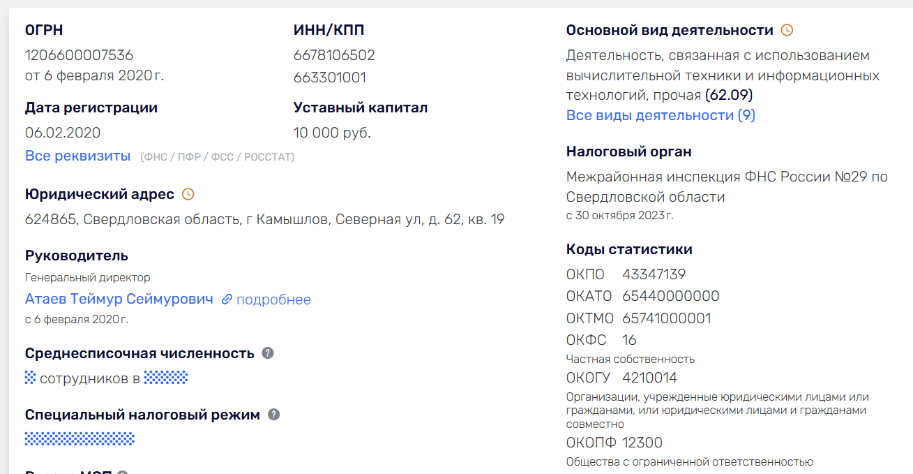 В футере сайта имеются юридические данные. Компания ООО Урал Техноком зарегистрирована в Свердловской области в 2020 году, сфера деятельности – информационные технологии и компьютерные услуги. Генеральный директор за годы функционирования проекта не менялся – Теймур Сеймурович Атаев. Его же имя видим на маркетплейсах приложений. Согласно автоматическому анализу финансовых показателей платежеспособность компании отмечена как нормальная, несмотря на снижение прибыли компании в 2024 году по сравнению с предыдущим налоговым периодом.
