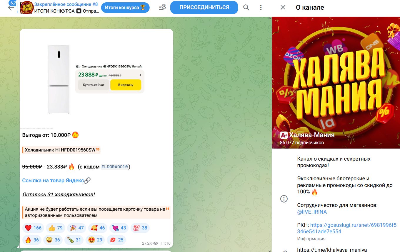 Анализ Телеграмм-канала Халява Мания: отзывы и проверка Khalyava Maniya на честность