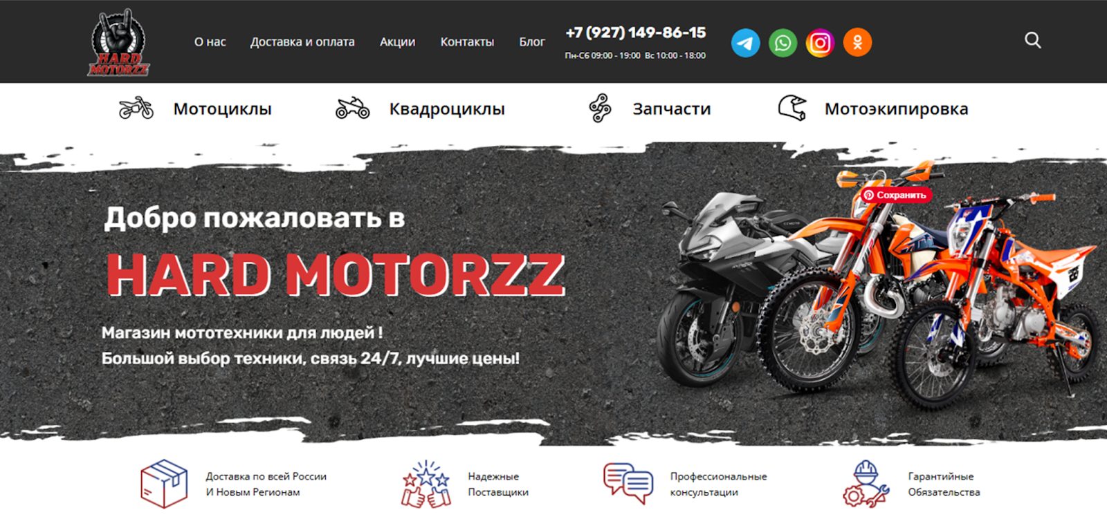 Hard motorzz – магазин мототехники и экипировки, который территориально находится в Новороссийске, но предоставляет возможность покупки онлайн. Покупателям гарантированы самые выгодные цены и удобная доставка любыми транспортными компаниями по России. Стоит ли совершать здесь покупки или это очередной скам, рассказываем в обзоре.