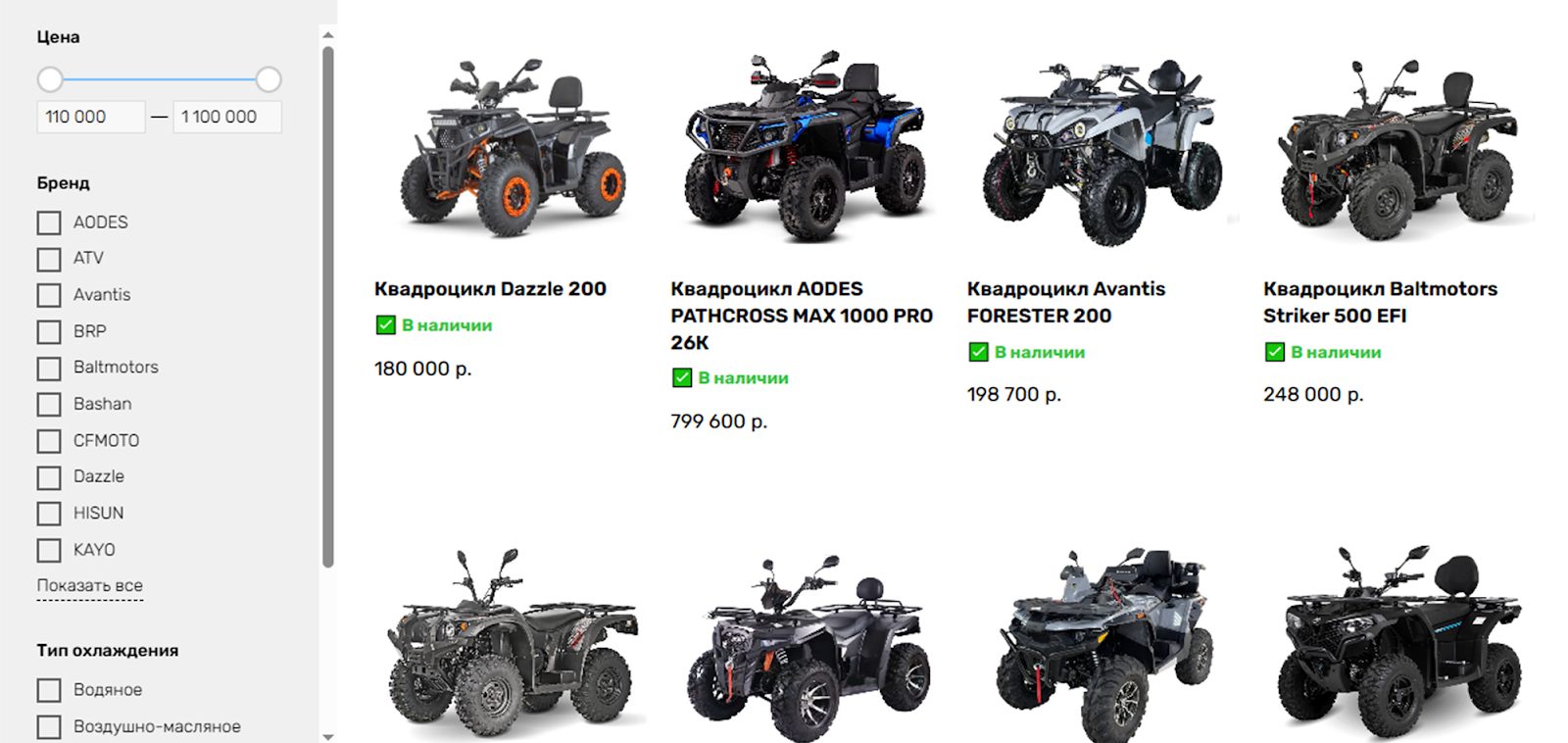 • квадроциклы разной мощности;