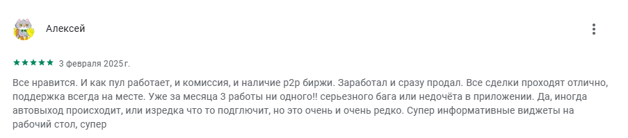 Внутри этого приложения можно не только отслеживать информацию о работе майнеров, но и обменивать добытую криптовалюту на фиаты и выводить ее на карту. Однако рынок п2п может быть недоступен для пользователей из РФ. Хотя таких жалоб не поступает.