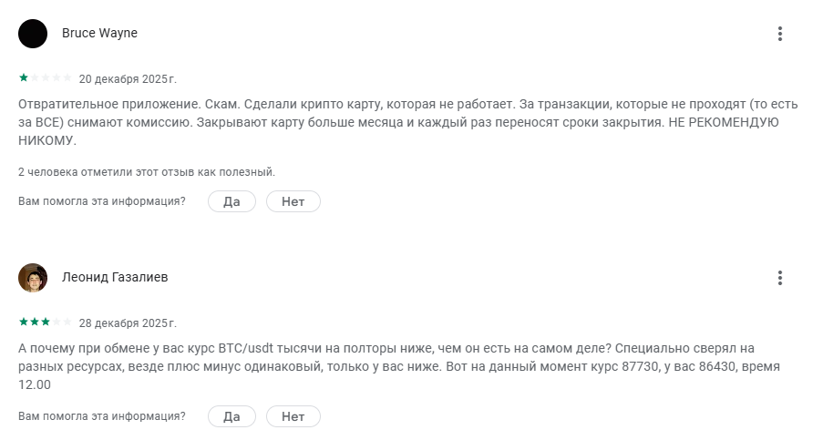 Но есть пользователи, у которых возникают проблемы с сервисом. Одни жалуются на плохую работу криптовалютной карты, а другие – на не выгодные обменные курсы внутри экосистемы.