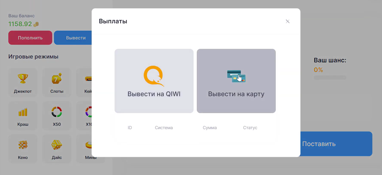 Мы не рекомендуем данную игру, так как вывести с нее деньги невозможно. Даже если проект через время будет перезапущен, то не следует вестись на его обещания, так как здесь представлены нерегулируемые азартные игры.