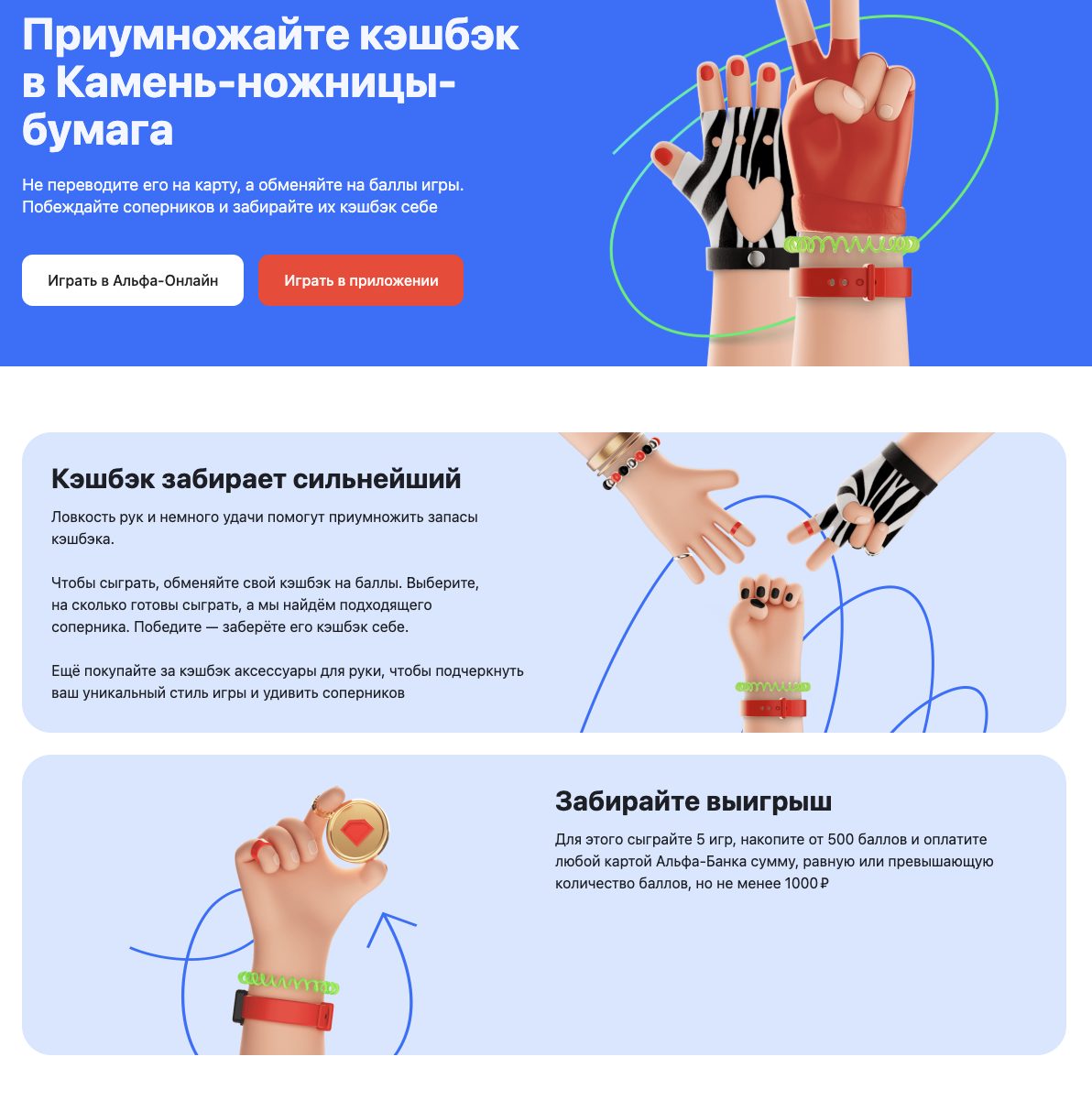 «Альфа Банк» предусмотрел отдельный лендинг для данной игры на своем официальном сайте. Он содержит всю значимую информацию о проекте, а также ответы на вопросы, которые могут возникнуть у пользователей.