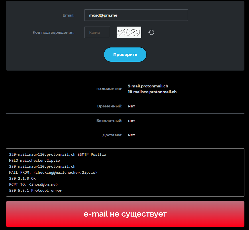 Дополнительный фактор, который говорит о том, что сервис является фейковым – это адрес электронной почты, указанный на сайте – ihosd@pm.me. Его просто не создали: