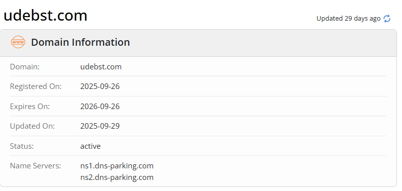 Если посмотреть на их дату, то видно, что они размещаются ажно с 2024 года. Но проверка возраста домена показывает, что он начал работать только в конце сентября 2025 года: