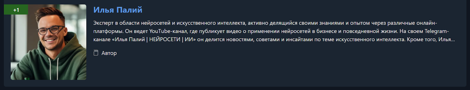 Себя Илья зовет экспертом в области ИИ. У него множество каналов и роликов о нейросетях.
