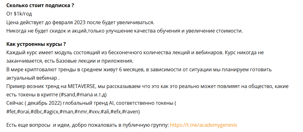 За годовой доступ к данному ресурсу Боев просит скромные 1000 USD. Судя по всему, проект он забросил еще в 2022 году. Это видно по прогнозам цен на БТС в 2023 году (из последних публикаций), а также из-за следующей информации: