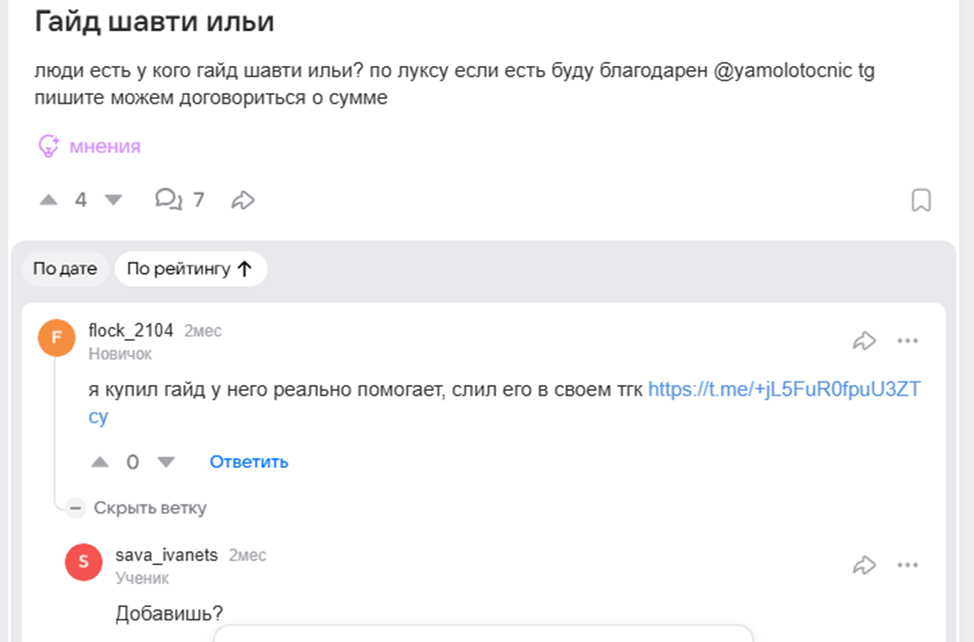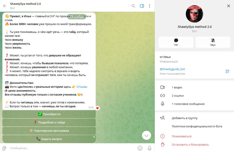 Те, кто не готов тратить деньги на покупку чудо-гайда «Шавти Илья Все про тебя», могут поискать в интернете слив этой информации. Некоторые клиенты создают целые ТГ-каналы, где можно получить оригинальную методику абсолютно бесплатно.
