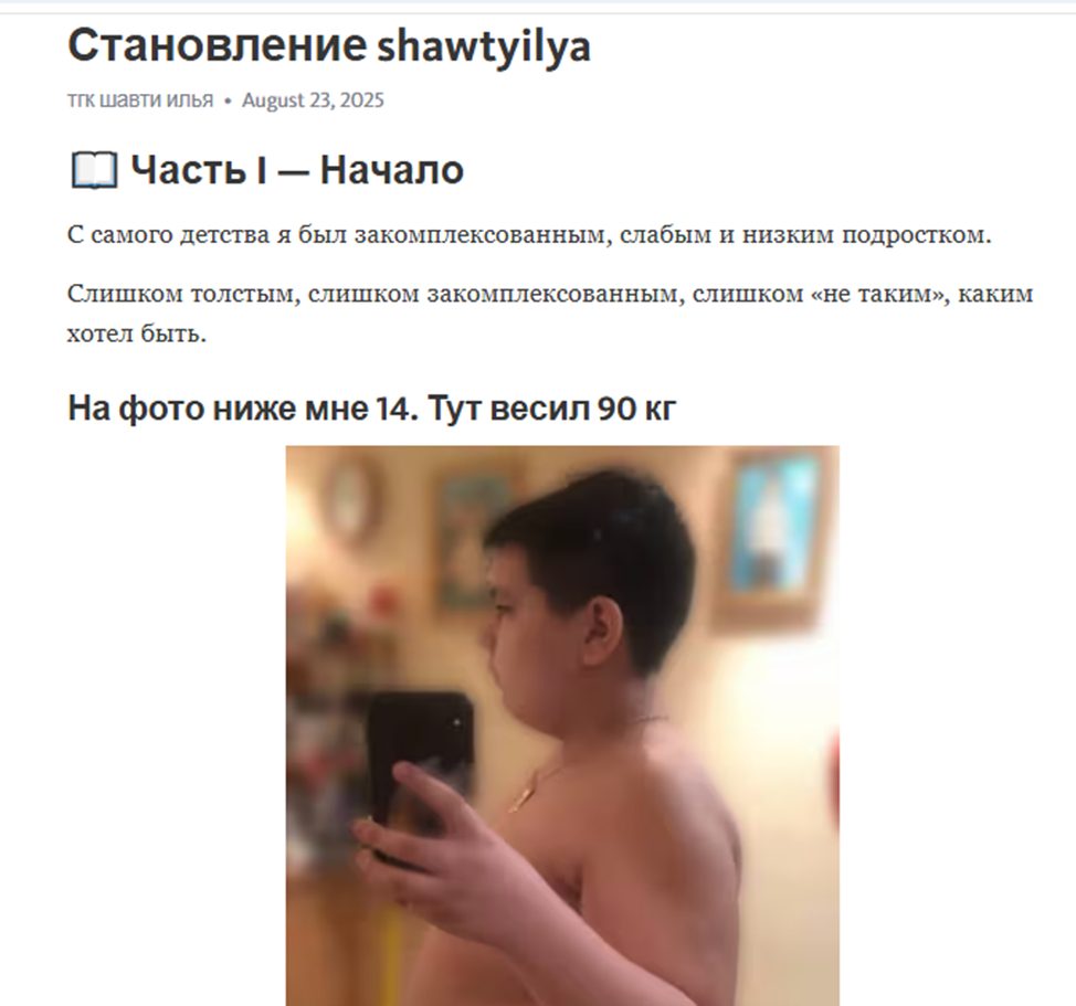 Всего за несколько месяцев «тяжелой работы» над собой Илья достиг феноменального результата. Трансформации личности и тела были настолько удивительными, что молодой человек решил поделиться своим уникальным методом с окружающими, основав в 2024 году именной телеграмм-канал.