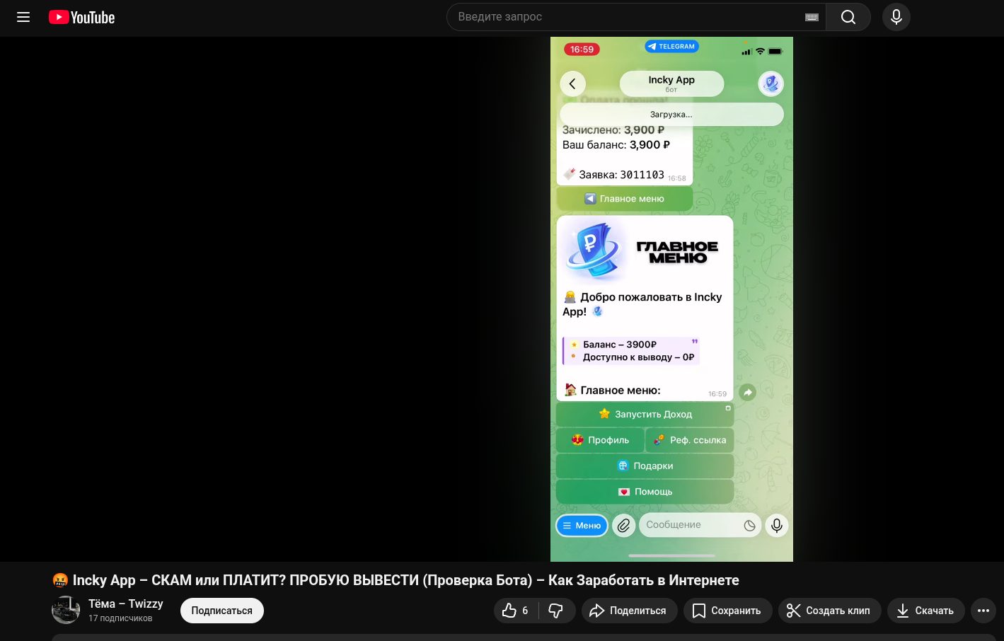 Найти объективные отзывы о InckyApp от пострадавших вкладчиков пока сложно, ведь такие телеграмм-боты живут недолго и постоянно меняют названия. Однако общая медийная картина выглядит крайне подозрительно. В поисковой выдаче преобладают рекламные ролики и статьи с кликбейтными заголовками в стиле «ПЛАТИТ ИЛИ СКАМ? ПРОБУЮ ВЫВЕСТИ». Авторы видео показывают постановочные экраны с переводами на десятки тысяч рублей и настойчиво призывают зрителей переходить по их реферальным ссылкам.