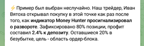 В сети не очень много отзывов о работе индикатора Money Hunter. Преимущественно, это обзоры и примеры работы скрипта с короткими пояснениями.