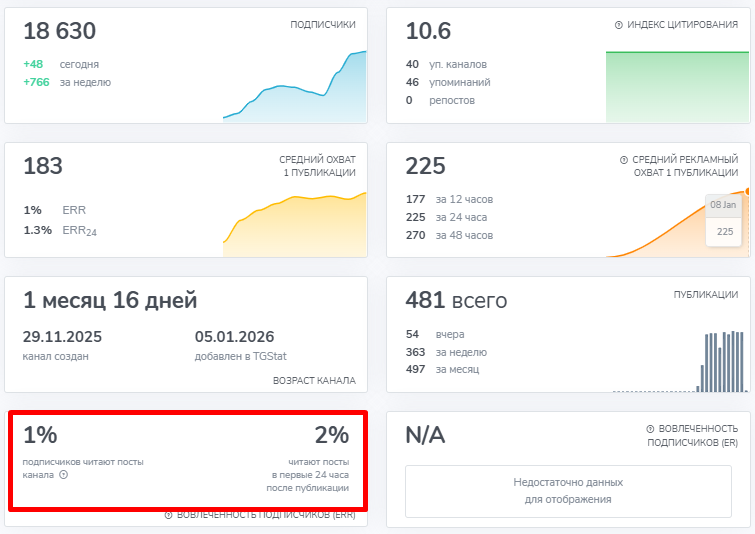В канале “самой крупной инвестиционной команды” числится свыше 18 тыс. подписчиков. Паблик закрыт, однако наставница обещает – заявки принимаются сразу. Однако лоховозка ведущей раскрывается уже при просмотре статистики. Проект на момент написания существует около полутора месяцев, а активная публика составляет 1-2%.