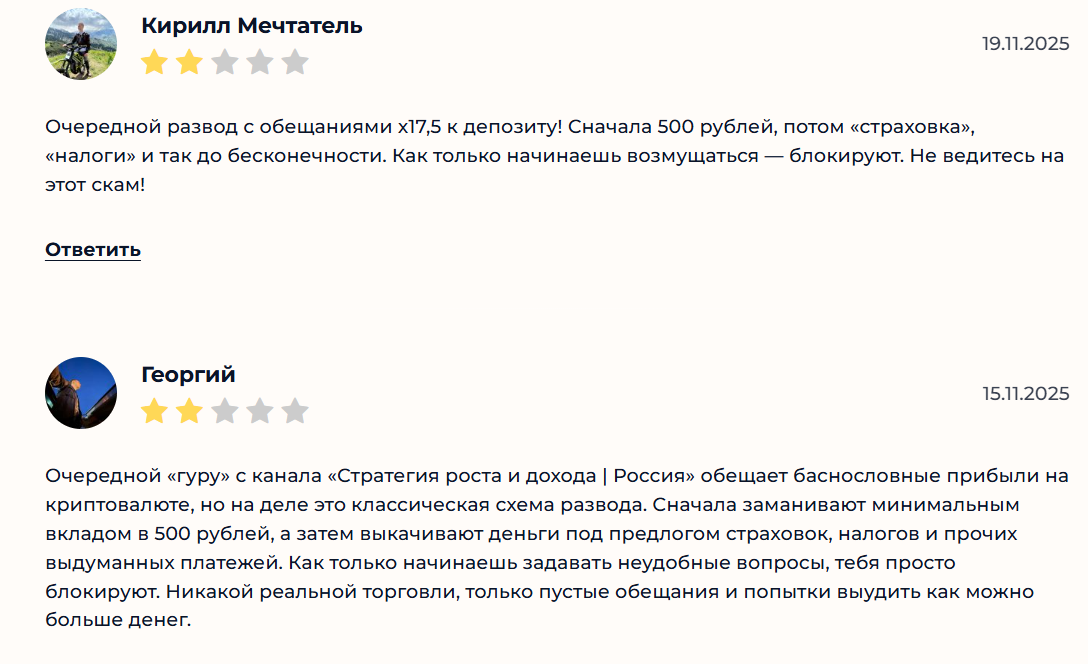 • негативные отзывы о проекте Индивидуальная стратегия роста на независимых ресурсах;
