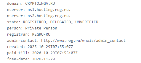 Домен проекта был запущен 29 октября 2025 года со сроком работы — 1 год. Это маленький срок, который показывает не заинтересованность автора в работе источника. Возможно, этот ресурс создавался только из-за анонса предстоящего вебинара и для того, чтобы клиенты могли на него записаться.