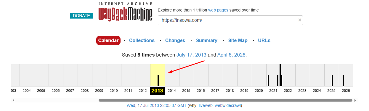 Мы не нашли площадку на авторитетных порталах вроде BestChange или Kurs Expert, где публикуют списки проверенных обменников, что делает работу с ним опасной. Проверка с помощью WHOIS домена Insowa Com показала, что он был зарегистрирован в 2020 году, но при этом не имеет истории, а в 2013 имя принадлежало другой компании. Возможно, перед нами спящий проект, который аферисты решили активировать совсем недавно, чтобы придать солидности и привлечь неопытных криптохолдеров.