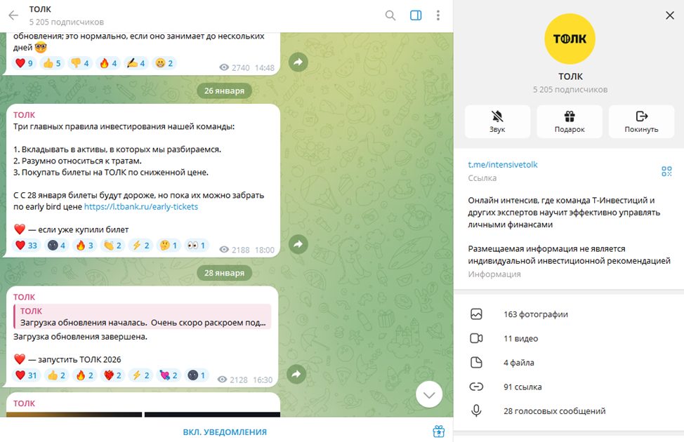 Кроме официального сайта TTolk Ru, вся информация о мероприятиях доступна в Telegram-канале TTolk по адресу @ Intensivetolk. В ленте не только рассказывают об особенностях проведения конференции, но и публикуют последние новости, а также дают полезные советы по инвестициям и финансам.