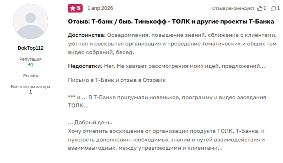 Проект T Tolk Ru в основном собирает хорошие отзывы, а все отрицательные комментарии часто носят субъективный характер. Инвесторам нравится формат, доступность, а также качественный подбор экспертов, способных дать полезные навыки и инсайды.