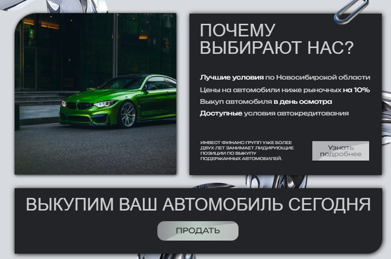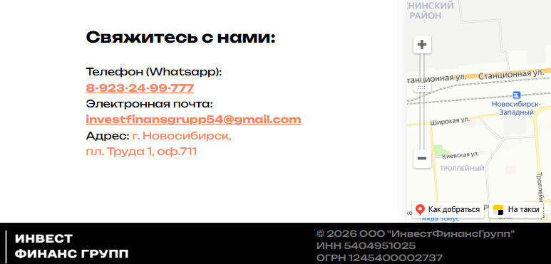 Инвестфинансгрупп работает в Новосибирской области. Сервис занимается выкупом подержанных автомобилей, также через данный ресурс можно купить авто. Каталога нет, все цены и актуальный список автомобилей нужно узнавать у менеджера. В обзоре расскажем больше деталей о проекте и выясним, какие есть отзывы про Инвест финанс групп из Новосибирска.