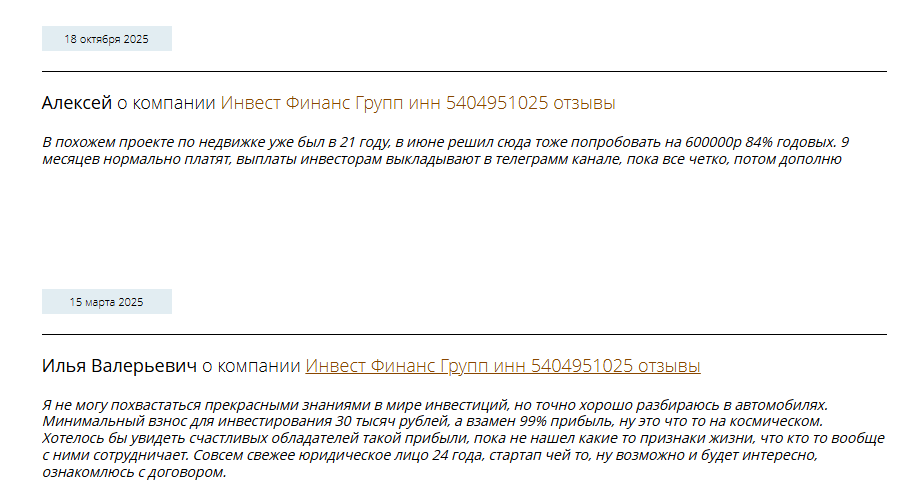 Другой же пользователь сомневается в правдивости обещания указанной прибыли, отмечая, что организация совсем свежая, юридическое лицо 2024 года.