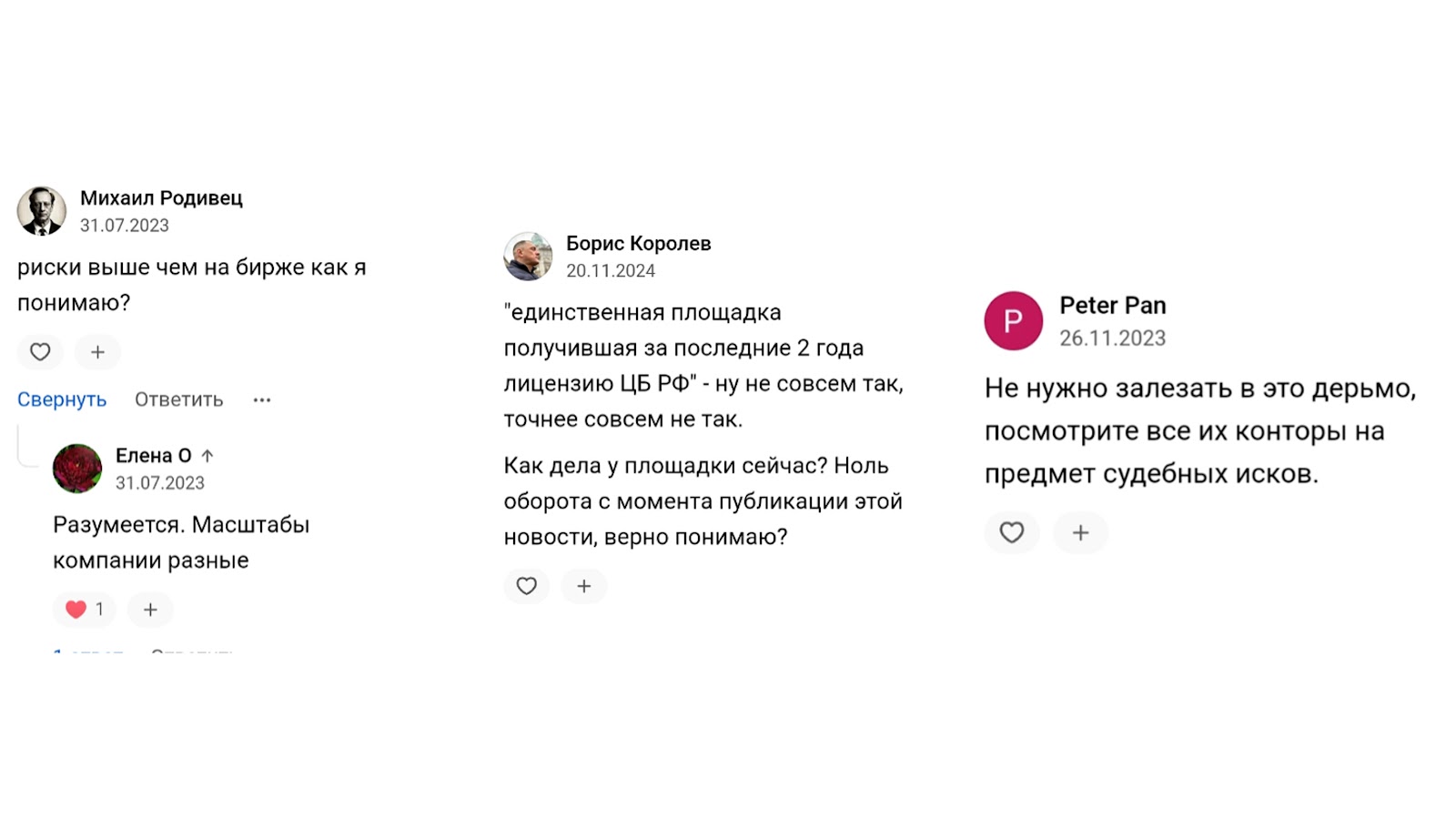 Встречаются комментарии о том, что возможны риски при вложениях, и их больше, чем на биржах.