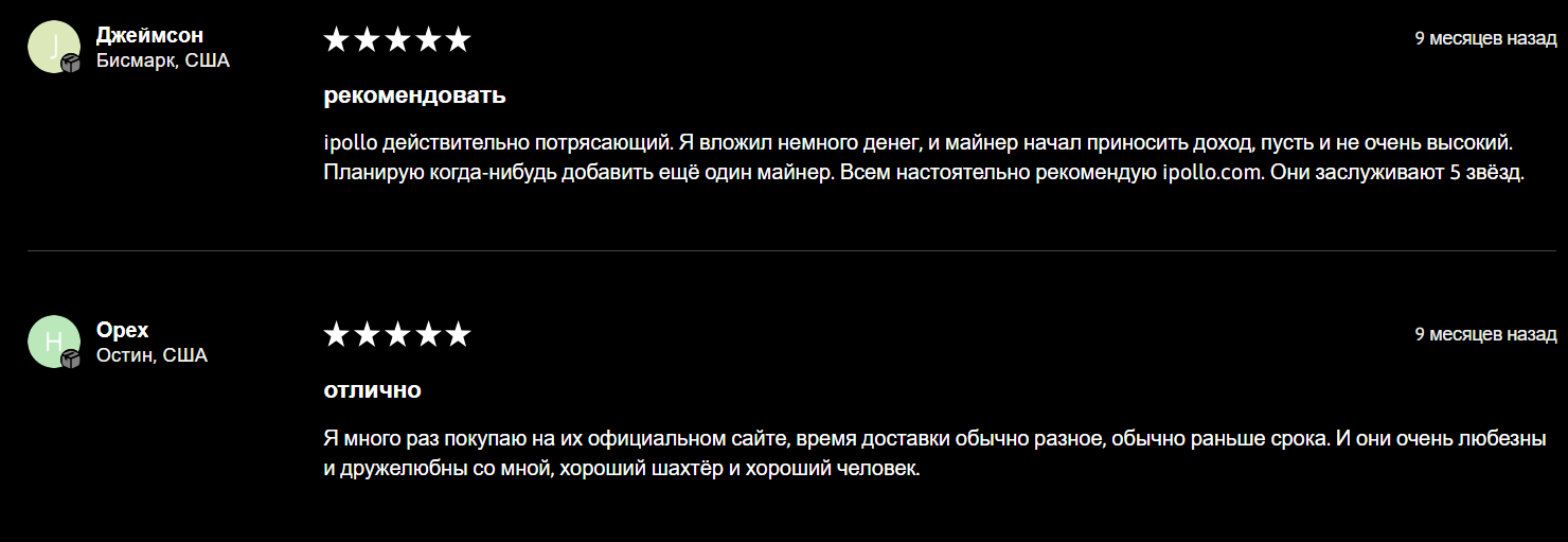 Отзывы об Ipollo Asic от реальных клиентов в Сети