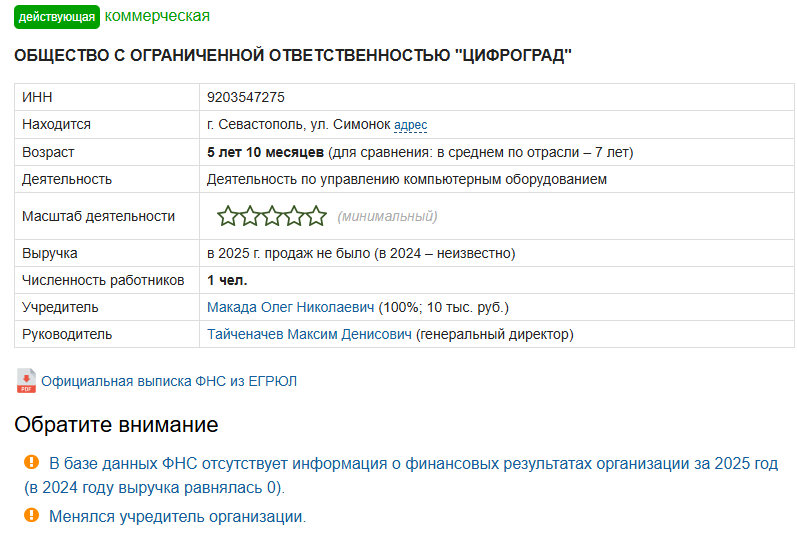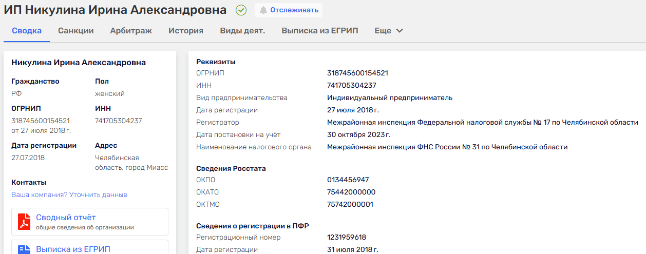 Официальная информация о компании Цифроград на сайте не представлена. Найденные организации с аналогичным названием юридически не связаны ни с Ириной Никулиной, ни с образовательной деятельностью. Существование компании в правовом поле под большим вопросом. Информации о своем ИП на официальном ресурсе Ирина также не представила. Из открытых источников известно, что предприниматель оформила свою деятельность в 2018 году, код по ОКВЭД – дополнительное образование.