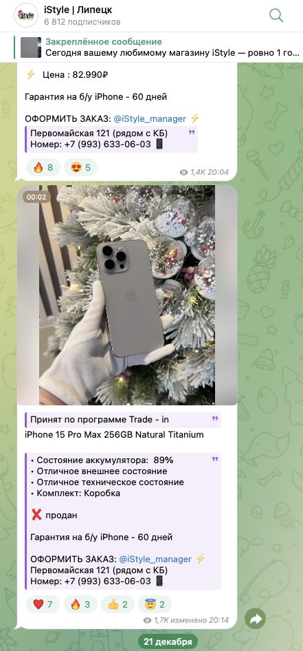 Магазин в Телеграмм iStyle Apple iPhone отзывы в Сети не заслужил. Однако, только одно отсутствие ревью не является признаком мошенничества. Поэтому наша редакция, чтобы выяснить, что это за продавец, и заслуживает ли он доверия, изучила всю наиболее важную информацию о нем.