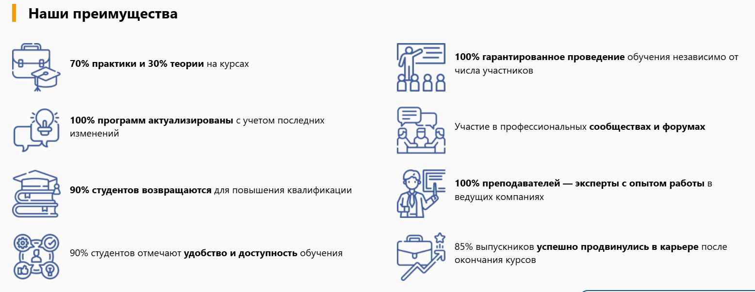 - Среди преподавателей управленцы с опытом и практикой, так что обучение, скорее всего, может быть сложным для начинающих, которым важно больше теории.