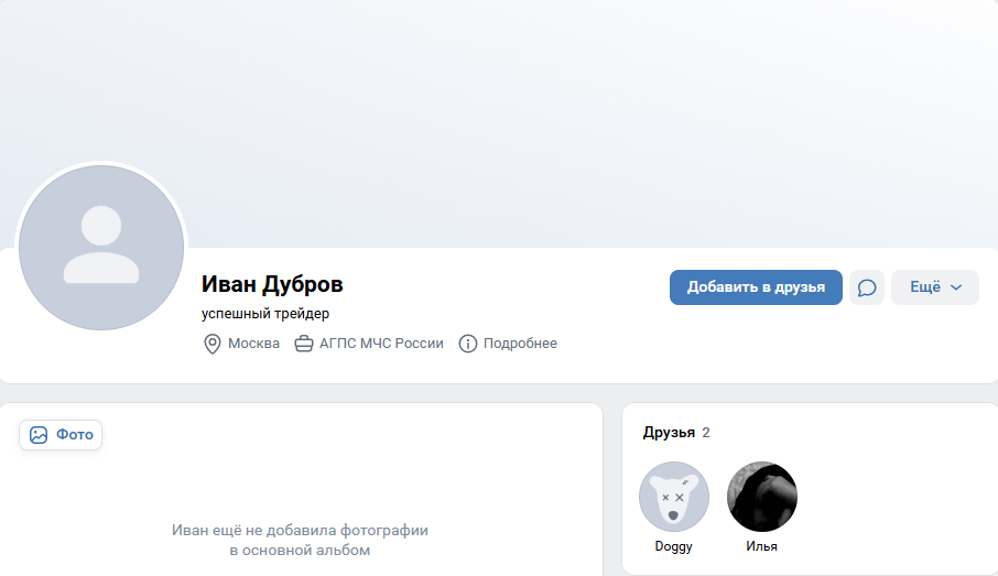 Трейдер криптовалют Иван Дубров имеет свою страницу в VK, которая полностью пуста. Есть лишь упоминание о том, что Ivan Dubrov является жителем Москвы, а также закончил Академию ГПС МЧС России. Для того, чтобы оценить риски сотрудничества и понять, будут ли прибыльными сделки, информации явно не хватает. О себе Иван пишет, что является успешным трейдером, и больше никаких данных нет.