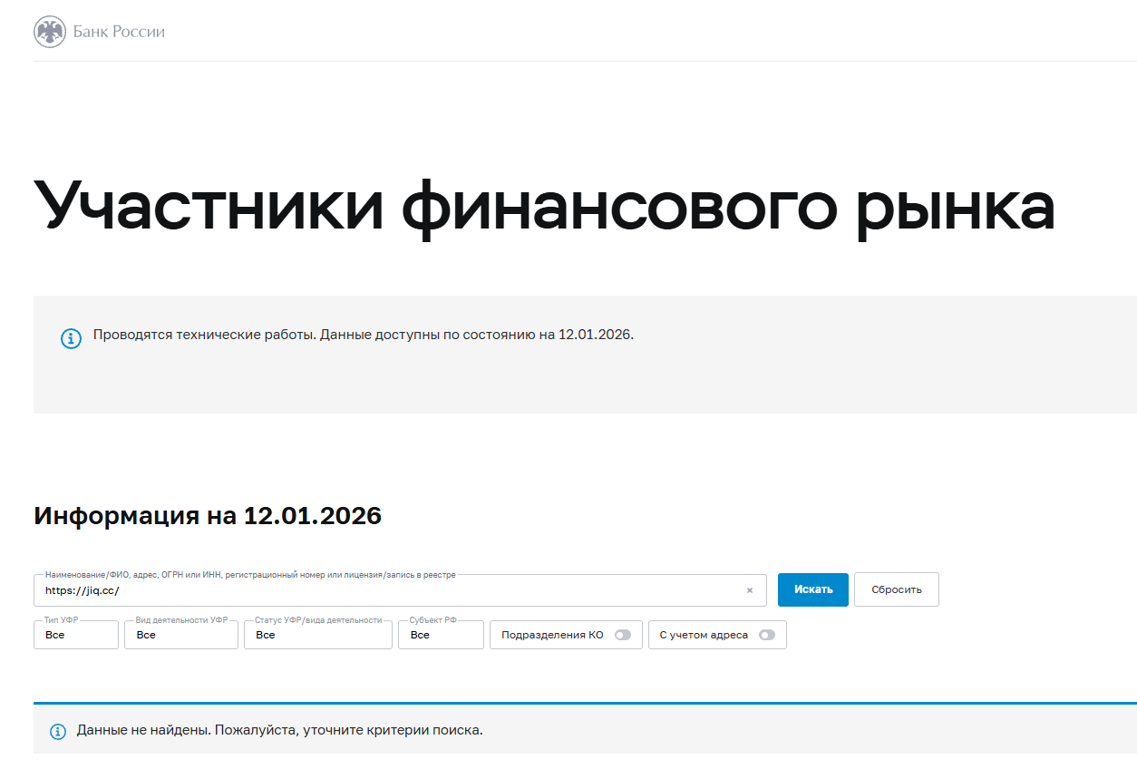 - Об организации нет никаких данных, поэтому вопрос регулирования остается открытым и есть вероятность работы вне закона.