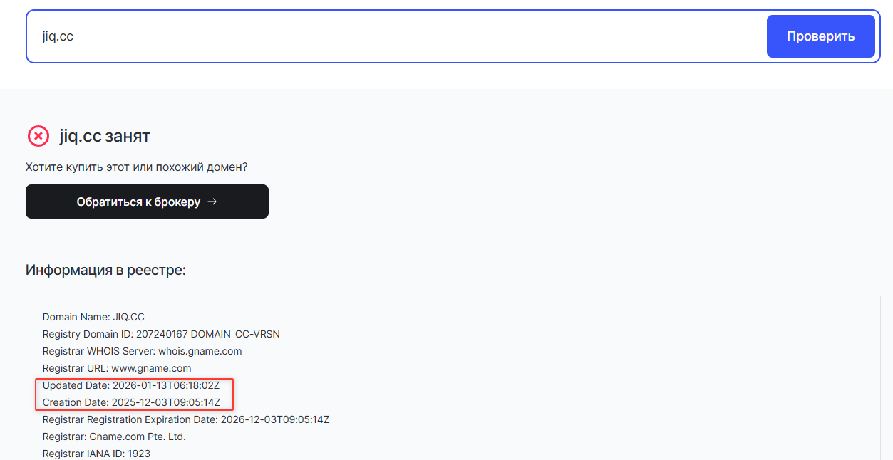 - Сайт существует с конца 2025 года, он не проверен временем и представляет угрозу за счет своего возраста.