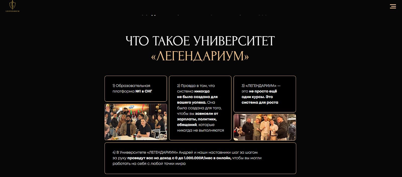 Там ИП Лукин Андрей Вячеславович продвигает свою академию Joinlegendarium Com, где доступно сразу 12 направлений для заработка. Каждый элемент сопровождается маркетинговыми заявлениями без подтверждений, где, например, TheAndrewLukin называет школу лучшим СНГ проектом, однако ее популярность низкая, он едва собирает пару сотен или тысяч просмотров под публикациями, в зависимости от социальной сети.