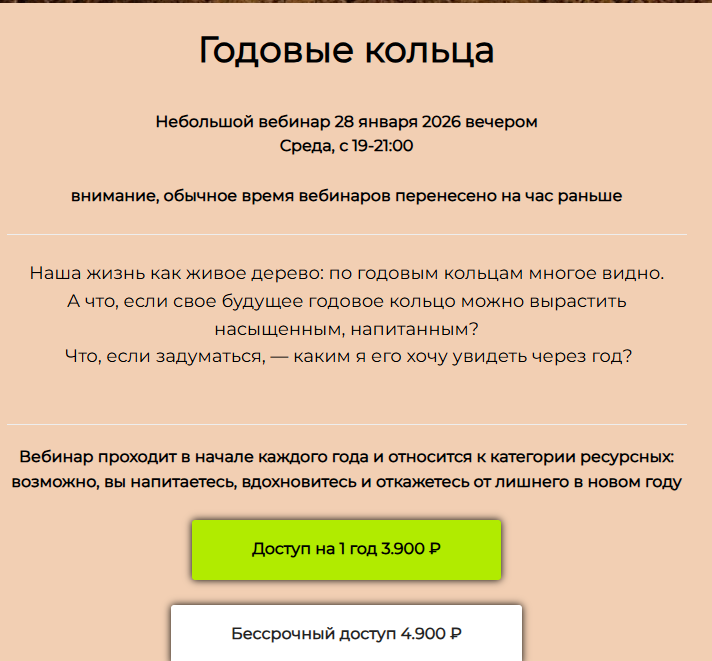 По состоянию на январь 2026 года на официальном сайте доступны другие вебинары Юлии Рублевой. Например, 28 января состоится онлайн-трансляция «Годовые кольца».