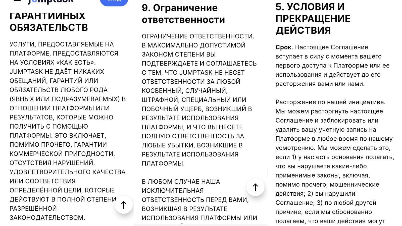 Джамп Таск работает без лицензии, и сервис может в любой момент ограничить пользователям доступ к аккаунту. Основатели отказываются брать ответственность за любые убытки, и из других сведений о проекте мы выделили: