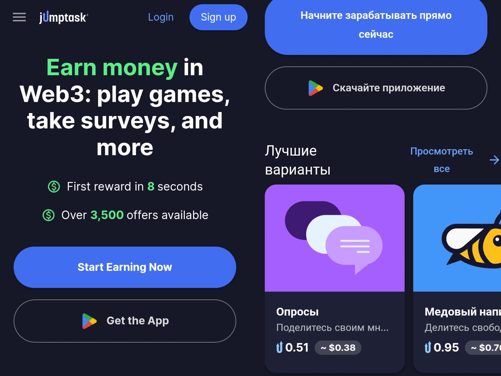 Заработок за задания Jumptask разный, например за опросы обещают около 0,38 долларов, а за просмотры роликов 0,01 долларов. Все награды начисляют в токенах JMPT. По словам создателей, их можно будет переводить на подключенные кошельки. При этом детали о выводе отсутствуют.