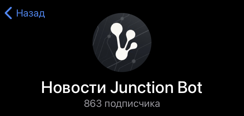 У проекта имеется новостной аккаунт в Телеграме Новости Junction Bot под юзернеймом junction bot news ru. Количество просмотров вчетверо меньше объема аудитории. Но при настолько небольшом числе подписчиков говорить о накрутке рано.