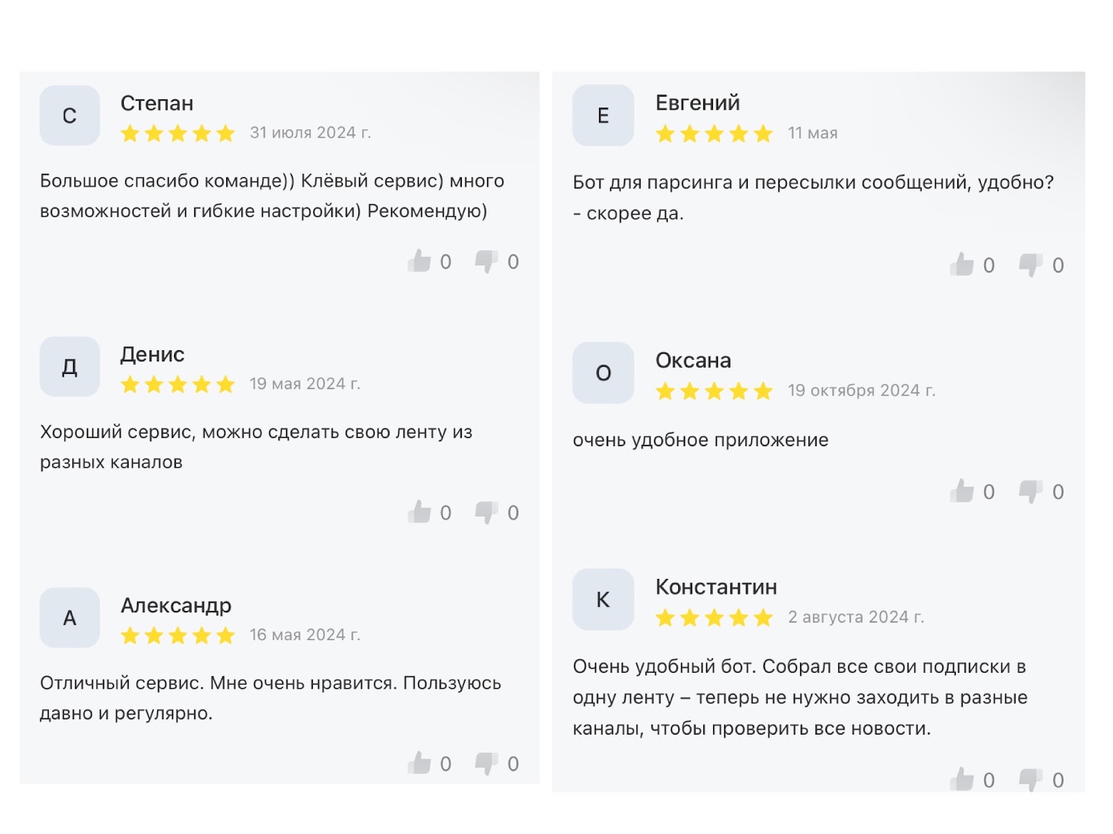 Но и среди того, что есть, развернутых сообщений также нет. Авторы фидбэков просто хвалят сервис, не углубляясь в причины такой реакции.