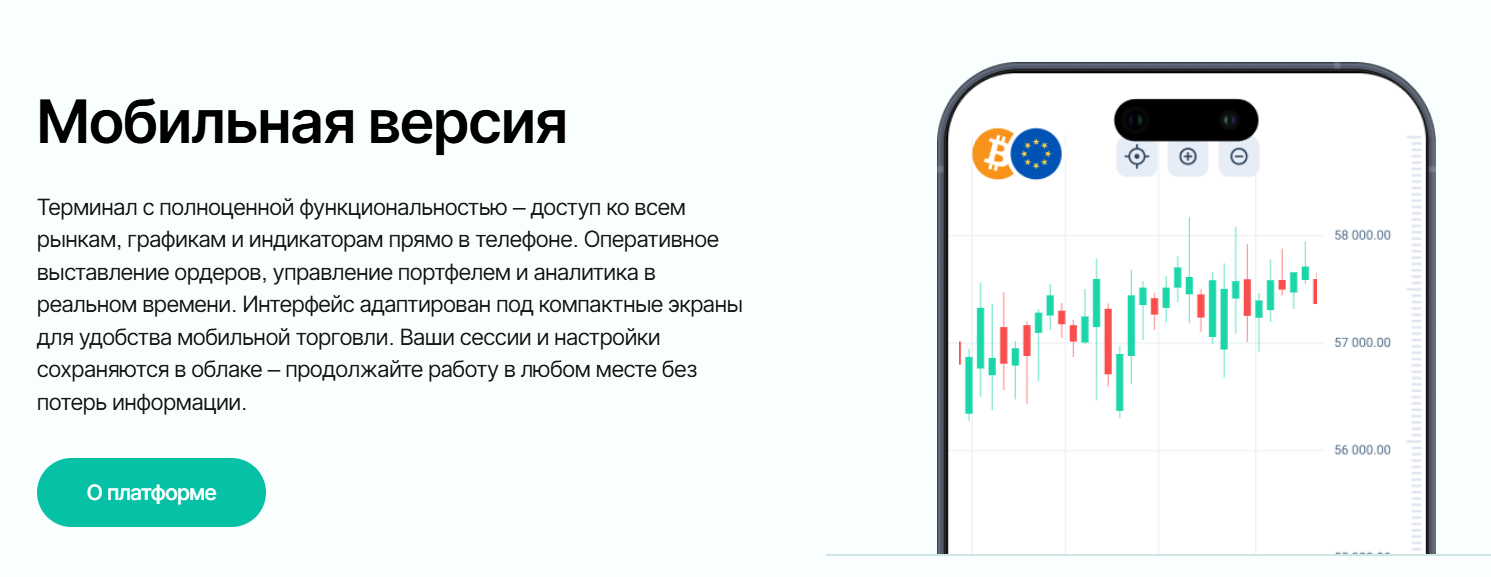 После пополнения счета автоматически активируется торговый план и открывается доступ к терминалу. Для удобства трейдеров есть мобильная версия.