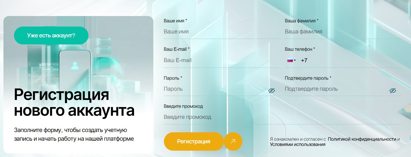 Для доступа к торговому терминалу нужно зарегистрироваться на Kasar xyz. Для этого необходимо указать: