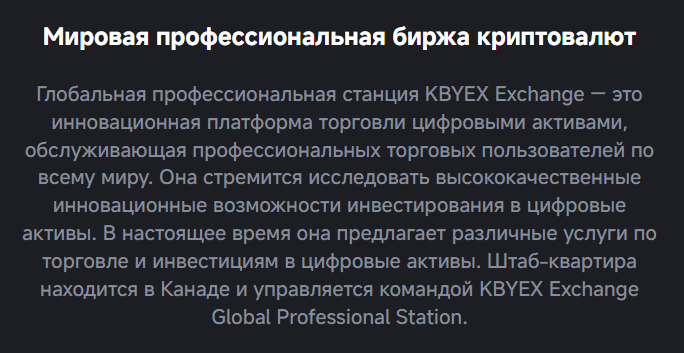 На официальном сайте платформы указано, что их юридическое лицо — KBYEX Exchange Global Professional Station. Информации о такой компании нет. Она не зарегистрирована ни в реестре Сингапура, ни в реестре Канады.