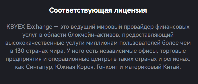 Компания Kbyex работает без лицензий. Разрешение от ЦБ РФ не получено. Юридического лица нигде нет. Даже в оффшорной зоне Вануату.