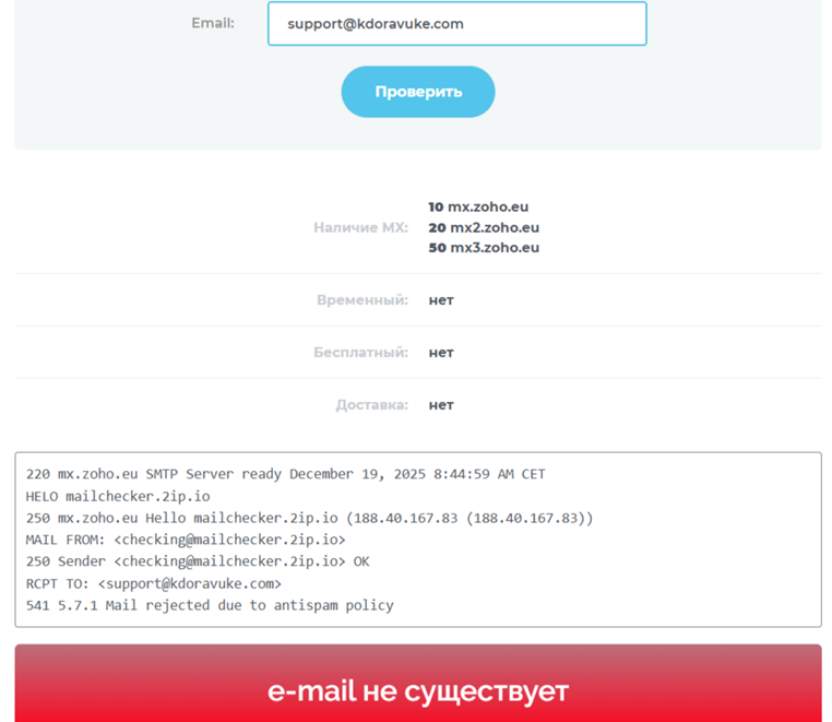 Брокерская компания предлагает компетентную поддержку. Пользователи могут обращаться к специалистам по разным вопросам. На сайте представлена электронная почта – support kdoravuke com. Проверка показала, что указанный адрес является несуществующим, что является серьезным недостатком для брокера.