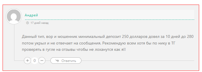 Мы не можем подтвердить надежность этого трейдера. Доверяйте только проверенным специалистам.