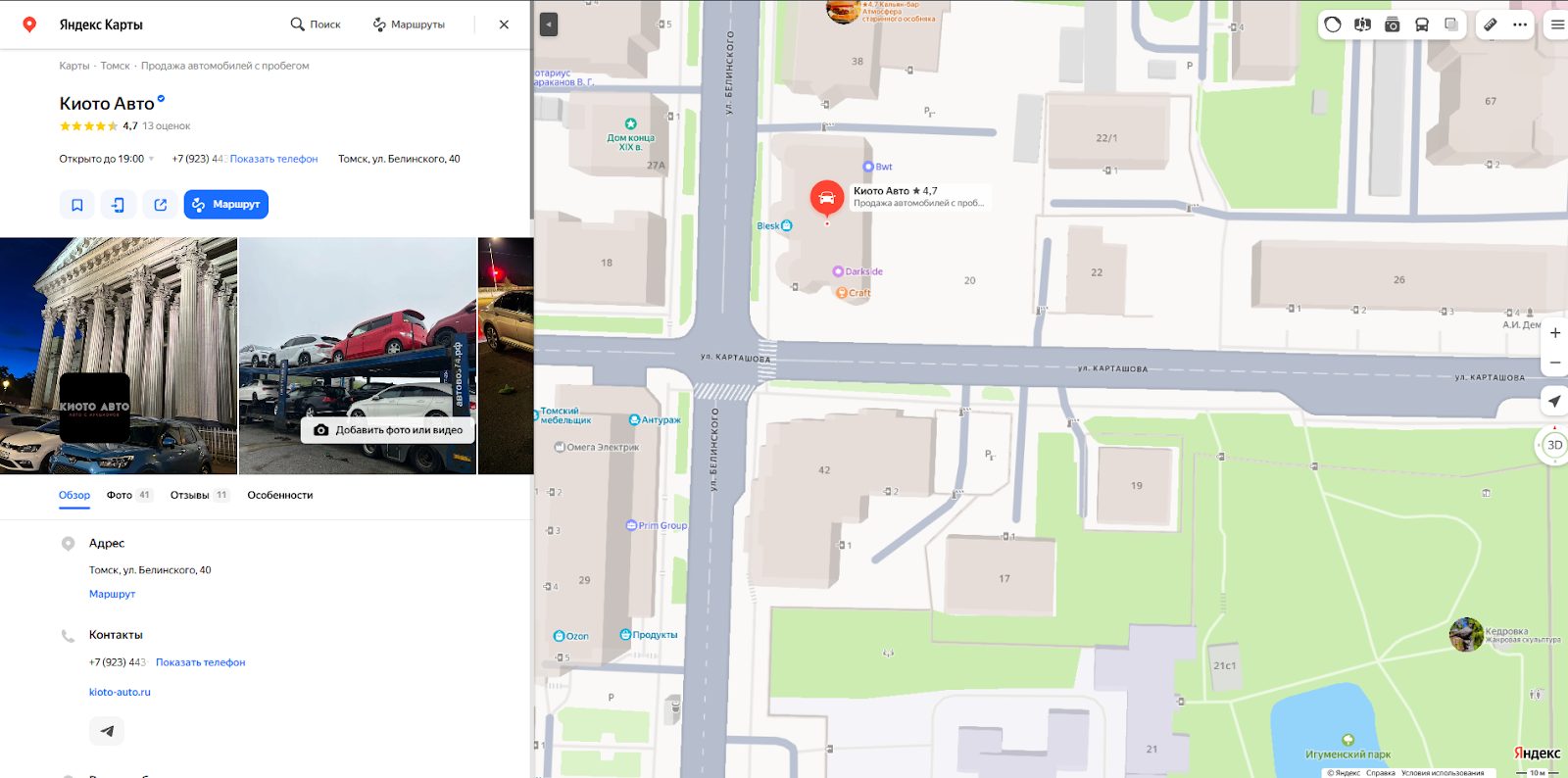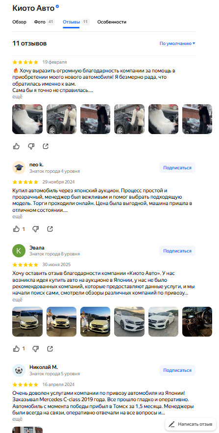 • В сети немало положительных отзывов о компании «Киото Авто» из Томска, что говорит о положительном опыте клиентов и снижает риски.