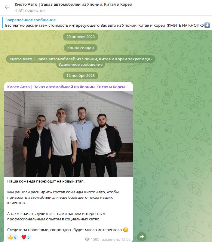 С 2023 года организация ведет телеграмм-канал @kioto_auto, на который подписано более 4 400 человек, что говорит о востребованности услуг. Ссылки на это сообщество можно найти на главной странице сайта, что доказывает причастность компании к ресурсу.
