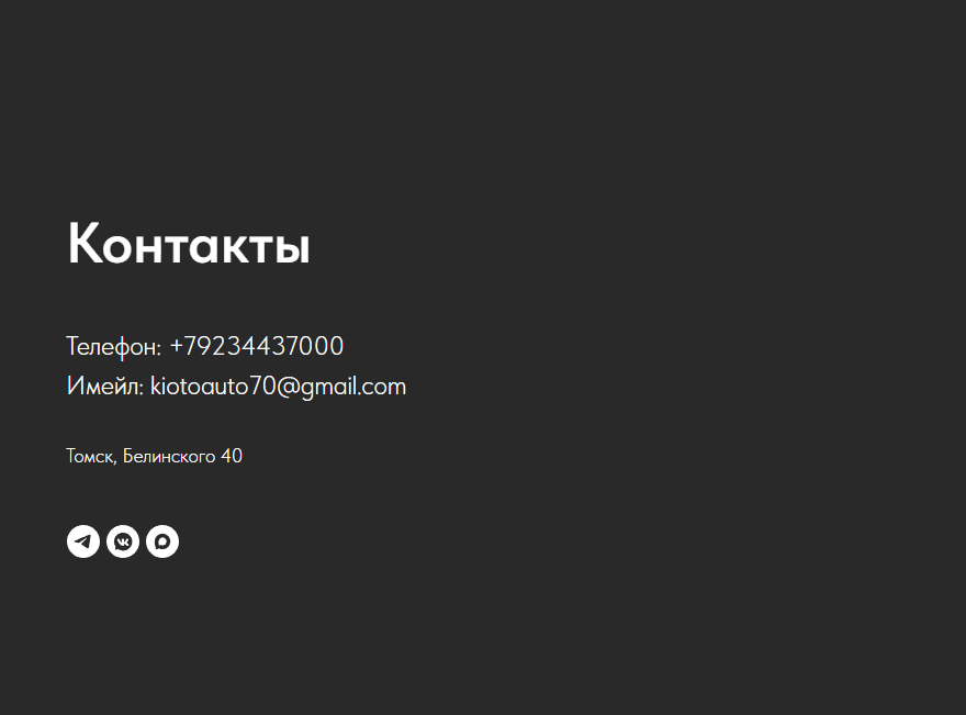 Чтобы связаться с представителями компании, можно позвонить по номеру +79234437000 или написать на почту kiotoauto70@gmail com, а также обратиться к одному из менеджеров в социальных сетях.
