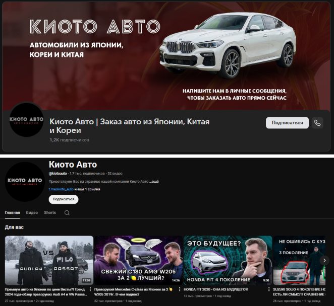 Также выделим группу @Kioto_auto во «ВКонтакте» и ютуб-канал @kiotoauto, на которые подписано 1 200 и 1 700 человек, соответственно. Активность под постами отслеживается и, несмотря на закрытость статистики, прямых следствий накрутки не наблюдается.
