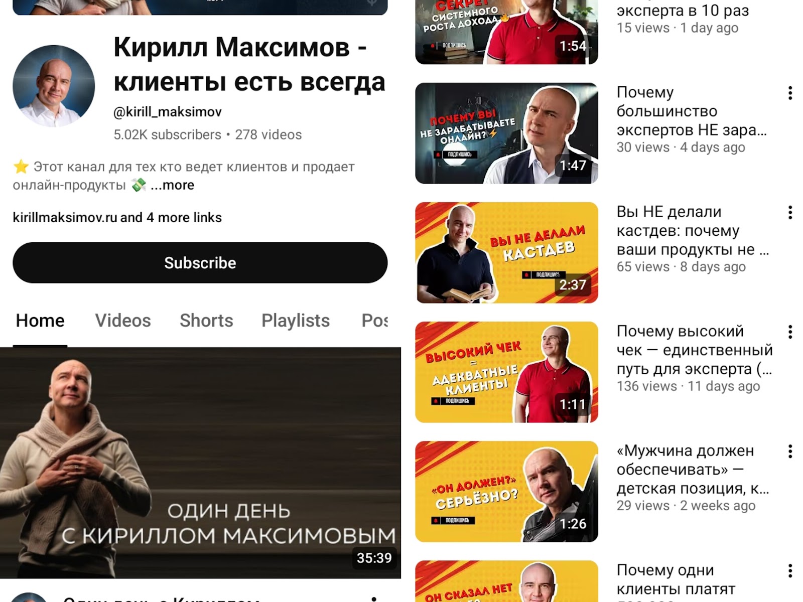 YouTube канал Kirill Maksimov был создан в 2020 году, и здесь 5k пользователей.