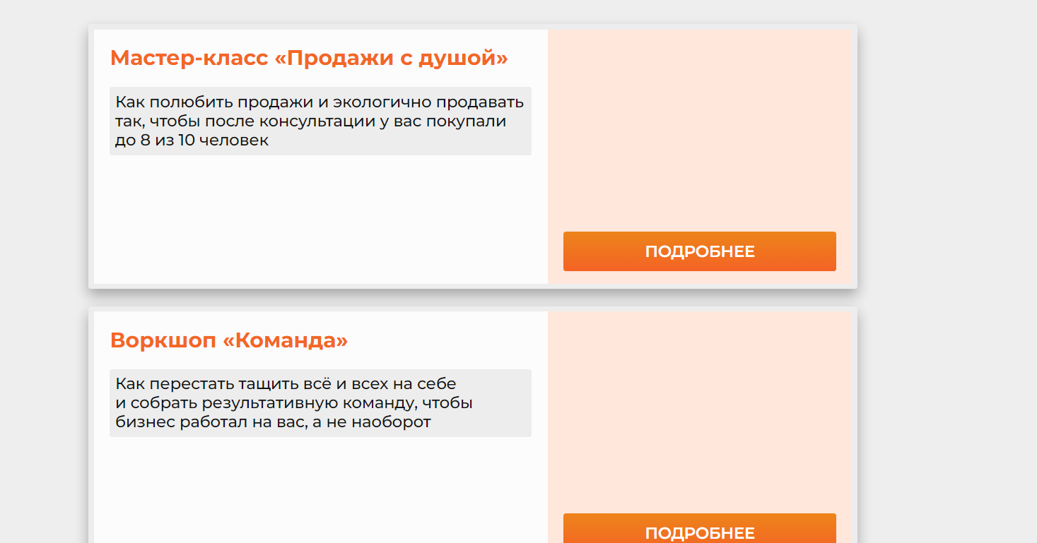 • “Команда” воркшоп. Здесь разбираются функции в бизнесе, мотивация, понимание возможного уровня дохода. Подходит для небольшой команды или для продвинутых экспертов. Есть тариф “Запись”, который стоит 1 990 р.;